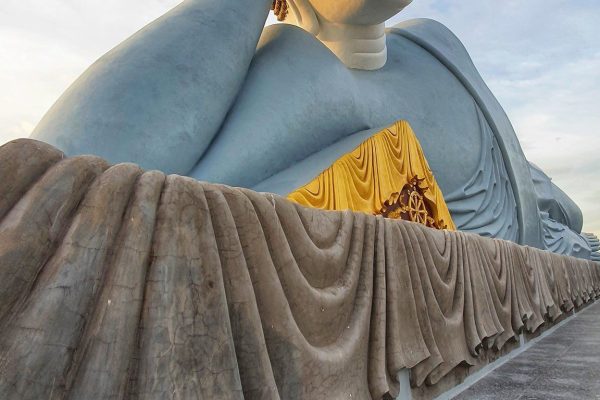 ?Điểm tham quan mới thu hút nhiều du khách viếng Chùa Som Rong với kiến trúc Khmer Nam bộ với tượng Phật nằm dài nhất Việt Nam.